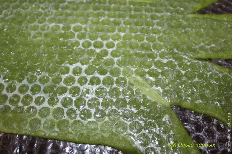 Опять поливаем, жужжим, переворачиваем, загибаем края и вновь укрепляем между пальчиками тоненькими пасмочками.