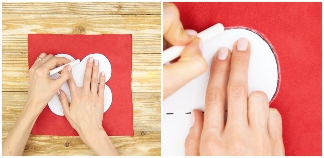 Кладем его на кусок ткани и обводим мелом или маркером.
