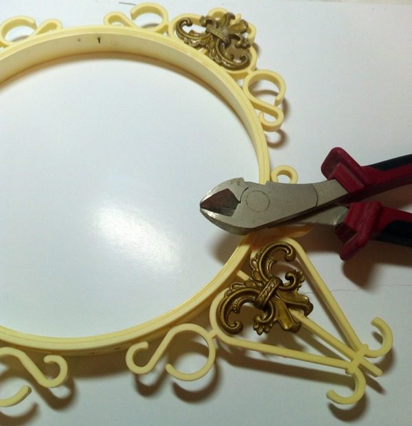 Пластиковая часть с виньетками раньше крепилась к деревянной основе скобами. Я закрутила маленькие винтики.