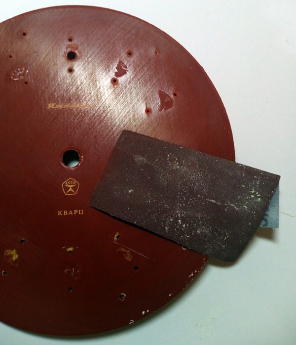Не известно, где висели часы, поэтому для лучшего сцепления дальнейших материалов обезжириваем поверхность ацетоном.