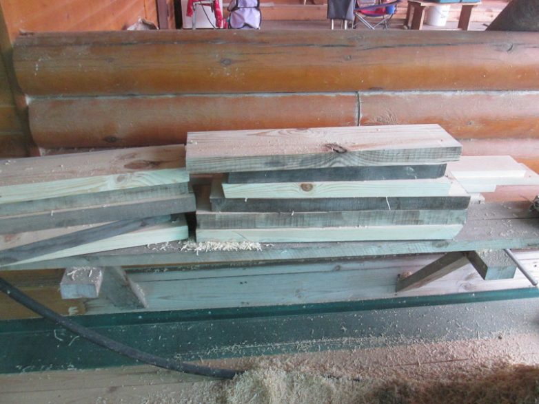 5. Для опор беру оставшуюся обрезь досок 200х50. Для того чтобы пропустить через рейсмус убираю грязь балгаркой
