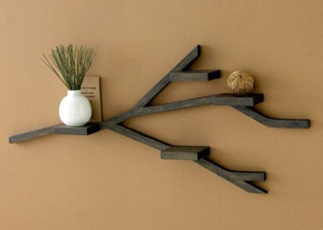 Если на вашей стене уже висит куча одиноких маленьких полочек, просто соедините их одной простой деталью, и получится… настоящее произведение искусства! Такая «ветка» будет круто смотреться и в спальне, и на кухне, и в ванной.