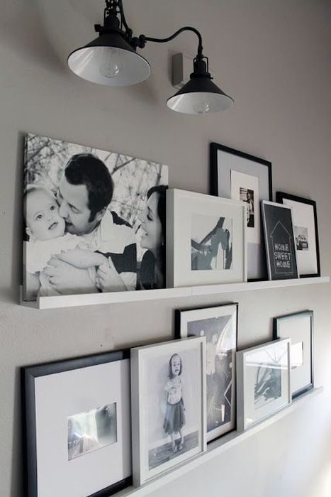 Открытые полочки можно использовать, как держатели для постеров и семейных фото. Такой декор всегда легко заменить или убрать, а полки использовать для хранения вещей – удобно, практично и стильно!