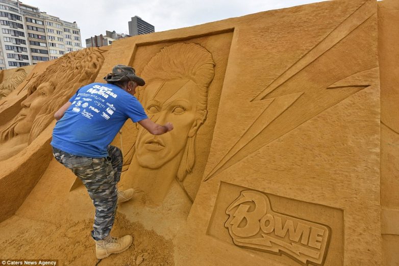 На побережье Северного моря в бельгийском городе Остенде открылся 19-й ежегодный фестиваль песчаных скульптур Sand Sculpture Festival. Тема фестиваля в этом году звучит как «Звёзды шоу-бизнеса».