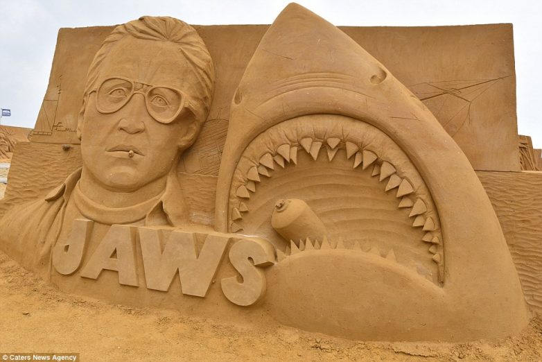 Песчаная скульптура по мотивам фильма «Челюсти».