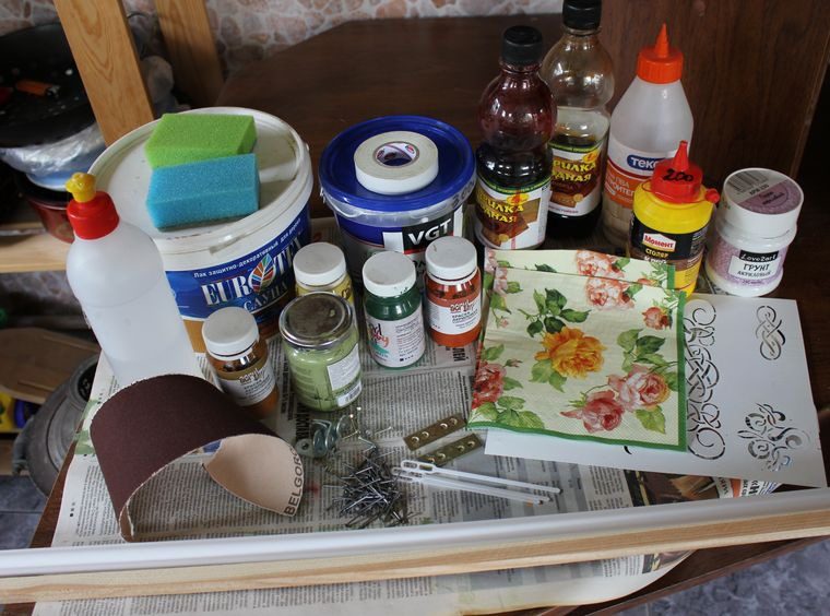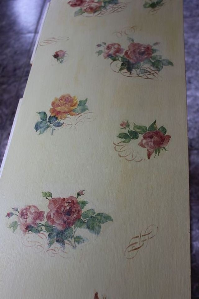 Теперь пришло время изменить внешний вид нашего стеллажа, то есть задекорировать его. Сейчас огромное количество всевозможных декоративных материалов и можно выбрать подходящие варианты и по цене, и по технике исполнения. В моем случае — это декупаж.