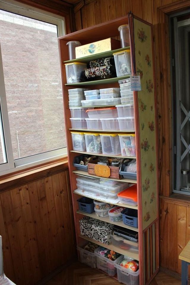 Но стеллажи часто либо не подходят по размеру, либо — что бывает чаще — высота полок уж больно большая, что не очень удобно при размещении ящичков и коробочек.