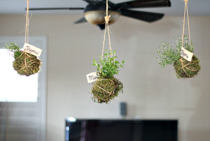 Украшать растениями можно не только подоконники, столы, тумбы и стены, но и потолок. Растения, висящие на нитках под потолком, выглядят невероятно стильно и эффектно.