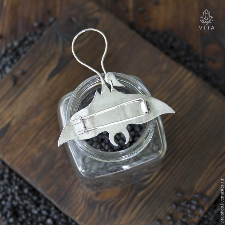 Это мой любимый тип броши — с двойной иглой. Такой механизм хорошо подходит даже для массивного изделия, позволяет ему плотно прилегать к ткани и надежно держит за счет упругих игл.