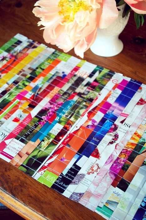 17. Салфетка или коврик из бумажного «плетения» выглядит ярко и необычно