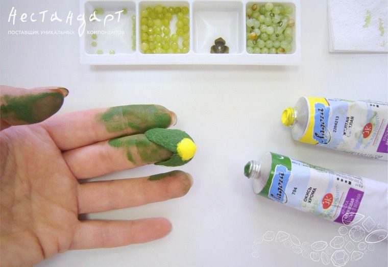 Окрашивание пальцами мне понравилось больше. Так я чувствую краску и поверхность кокона и могу втирать краску более густо или растирать, убирая излишки.
