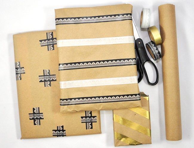 С помощью декоративного скотча можно оформить подарочную упаковку.
