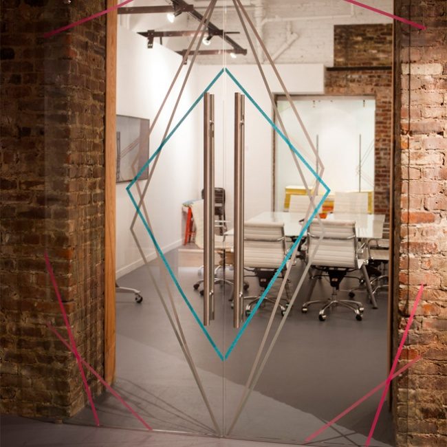 50. Геометрический узор на стеклянной двери