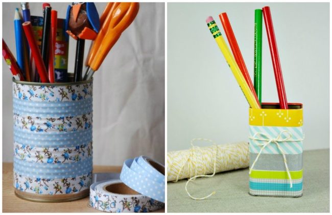 Декоративным скотчем можно украсить свой ежедневник.40. Стаканчик для карандашей