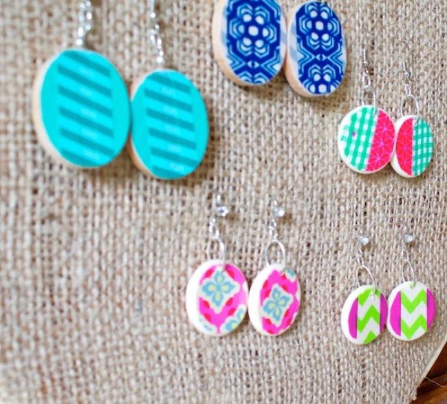 Обмотайте обычный металлический обруч декоративным скотчем и получится интересный аксессуар.65. Серьги