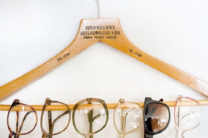 На обычной вешалке для одежды возможно разместить множество очков, даже целую их коллекцию.