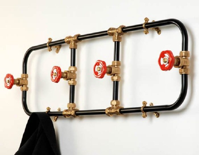 Трубы и краны могут стать изюминкой при оформлении такого нужного атрибута как вешалка.
