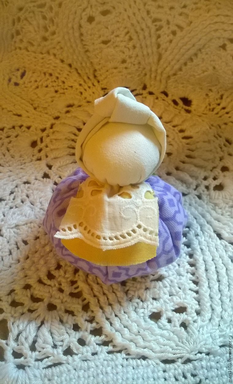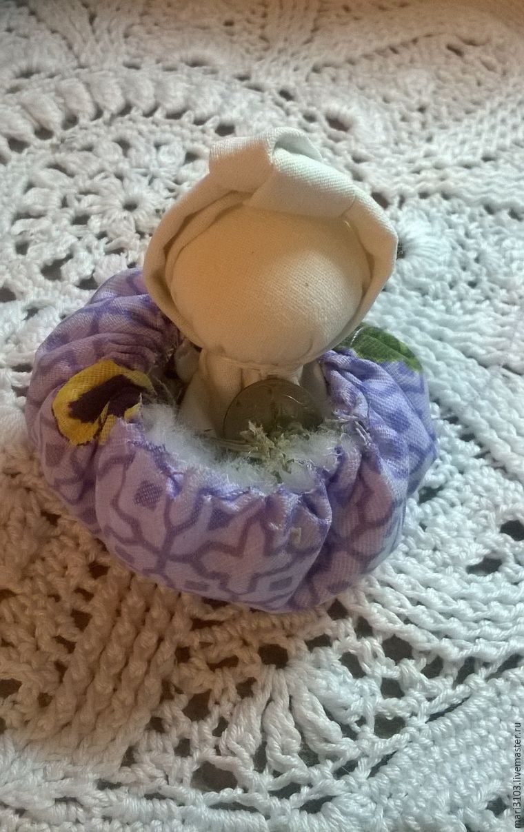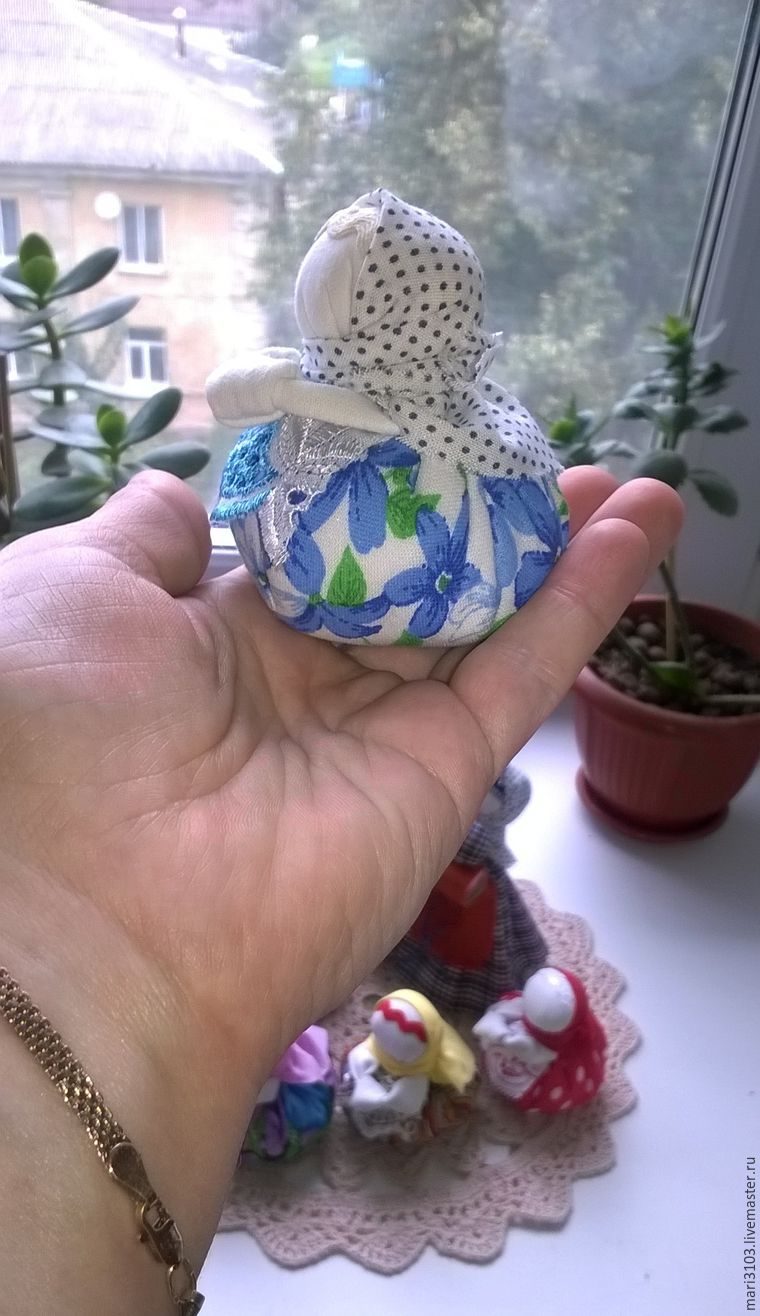 Куколка получается милая, маленькая, такая нежная! И еще очень приятно пахнет травами — из рук выпускать не хочется!