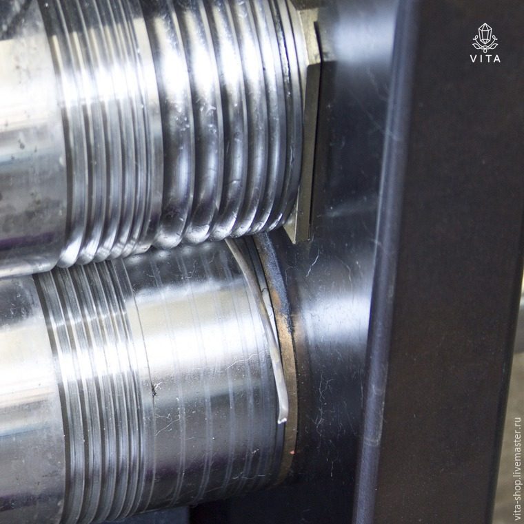 Отложим пока лепестки. Пора заняться шинкой. Раскатываем слиток под проволоку до нужной толщины и придаем ей двояковыпуклую форму. Для этого есть специальные желобки на вальцах.