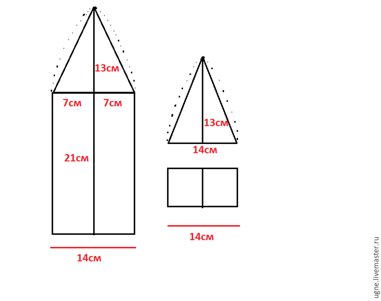 4. Вырезаем из стирекса 2-ю деталь. Прямоугольник 14 см на 10 см. И делаем срезы наискосок по стороне 14 см.