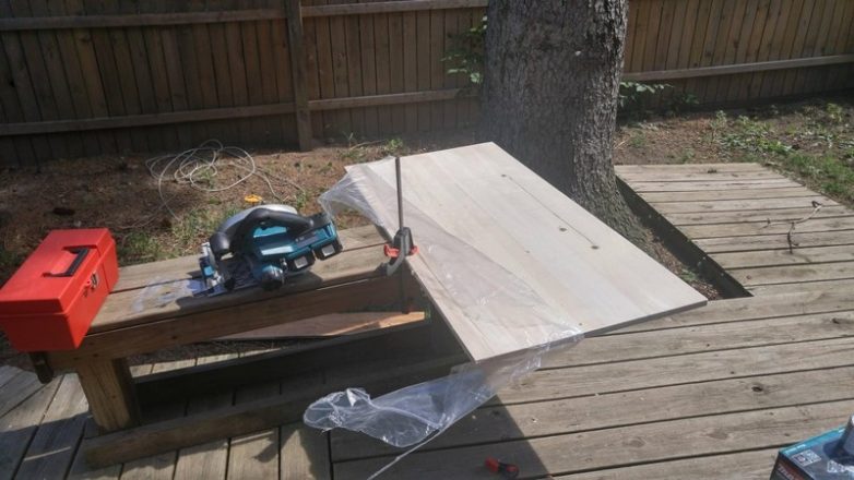 Каркас его стола успешно собран и отшлифован, теперь нужно установить верх и покрасить изделие.