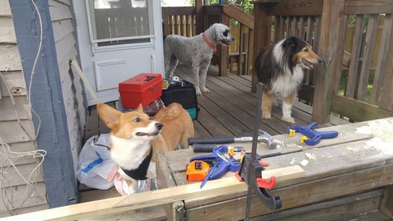 Далее он установил нижнюю полку на место и одобрительно похлопал себя по спине за создание таких прекрасных соединений.