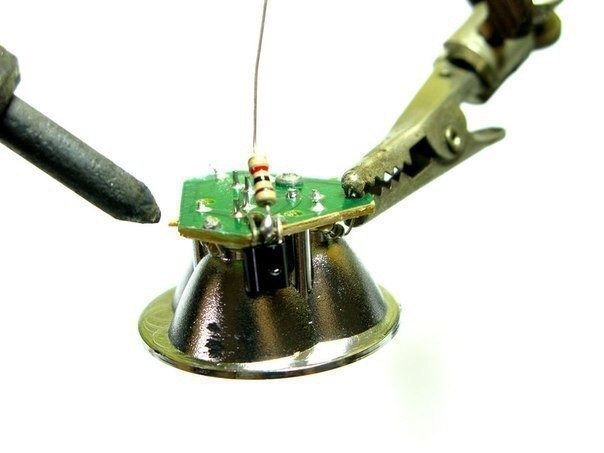 ПВХ труба длиной 10 см (3/4 дюйма); — ПВХ переходник с 3/4 дюйма на дюйм; — Небольшая ферритовая бусинка (похожую можно взять из нерабочей экономки); — Транзистор 2N3904 (NPN); — 1К резистор; — Отражатель со светодиодами (из старого фонаря); — Медный и цинковый электроды; — Медный одножильный провод в лаковой изоляции; — 4 листа туалетной бумаги; — Кусочек прозрачного пластика; Инструменты и оборудование: — Паяльник; — Клеевой пистолет; — Суперклей;Водяная батарейка является основным источником питания для фонарика. Она состоит из двух полос металла, медной и цинковой. Медная пластинка — это анод (плюс), а цинковая — катод (минус питания).