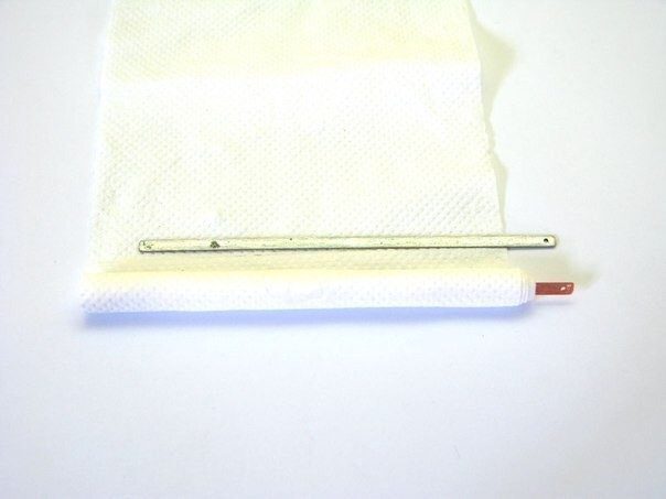 В первую очередь, обмотайте 3 листа туалетной бумаги вокруг медного электрода, затем вложите в образовавшийся рулон цинковый электрод и домотайте остаток вокруг их двоих. Затем обмотайте получившийся рулон медной проволокой, это предотвратит бумагу от разрыва, когда она намокнет.