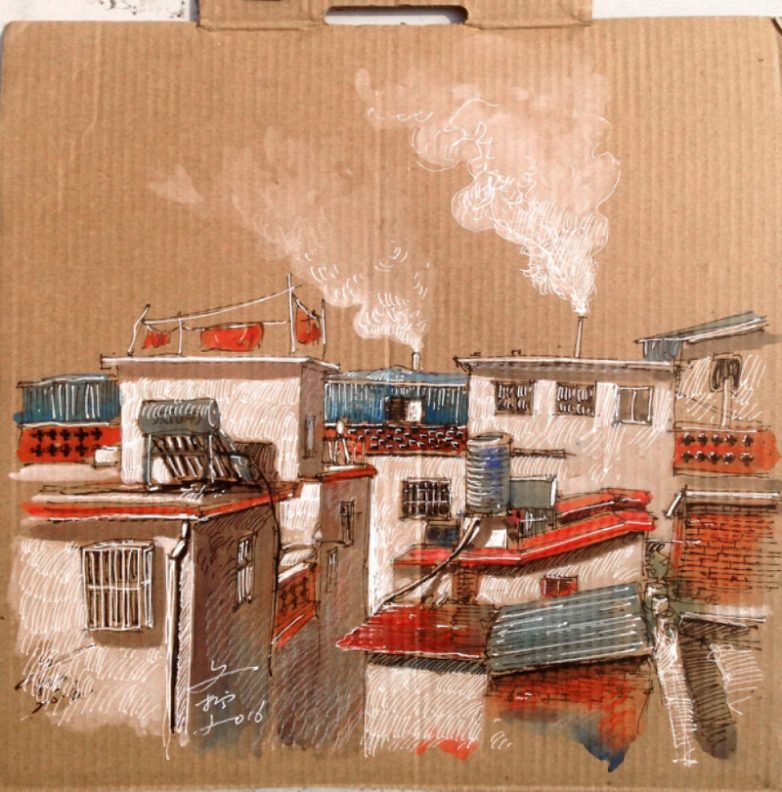 «Я решил использовать эту неиспользуемую бумагу для искусства, начав свой проект: на улицы Дали я вышел с ручкой, чертежной доской, но без бумаги, ее я решил искать просто по переулкам. После того, как я нахожу какую-то бумагу или картон, я разворачиваю полностью обвертку, затем ее разравниваю и наношу на нее свой рисунок — архитектуру, которую вижу перед собой. После этого, уже готовый рисунок, я креплю на стену, на самом видном месте, где и был найден кусочек этой самой бумаги, чтобы как можно больше людей его могли обнаружить. Я хочу, чтобы люди замечали искусство в нашей повседневной жизни, даже если оно выполнено на макулатуре».