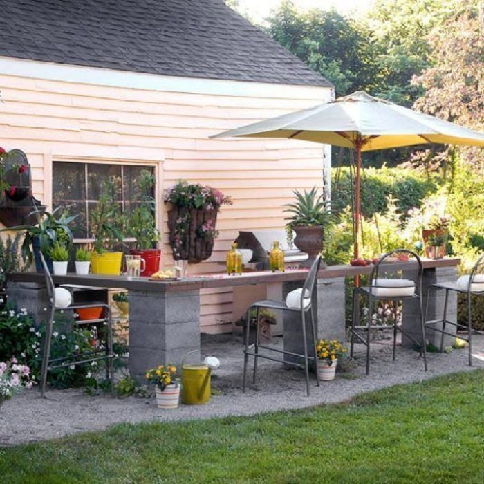 Удобный столик возможно создать при помощи шлакоблоков и ненужных досок, что станет просто оптимальным для любого двора.