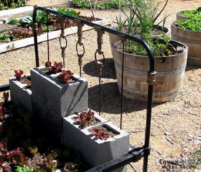 Хороший вариант оформить грядки и обложить их по краям шлакоблоками, то что понравится и украсит обстановку во дворе.