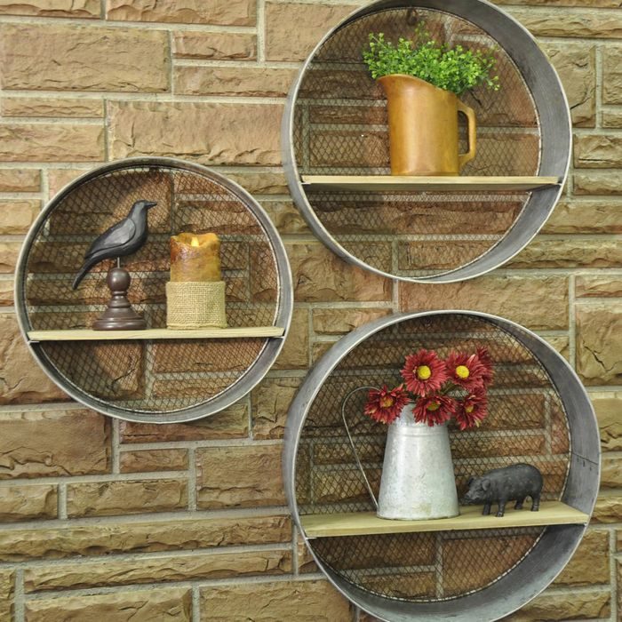 Сделать полки в деревенском стиле? Легко, если под рукой есть решето или даже несколько таких приспособлений. Стоит лишь оснастить их деревянными перекладинами и оригинальные полки готовы!