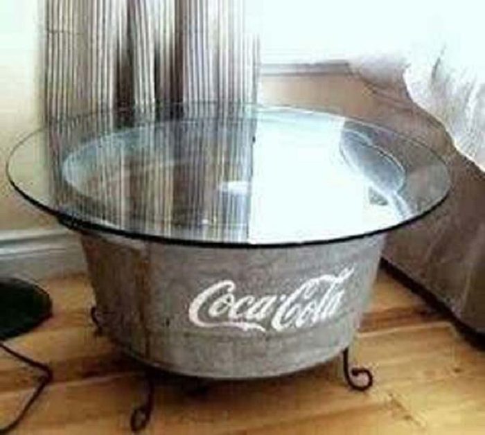 Возможно создать такой простой и симпатичный столик просто из обычного ненужного старого оцинкованного ведра.