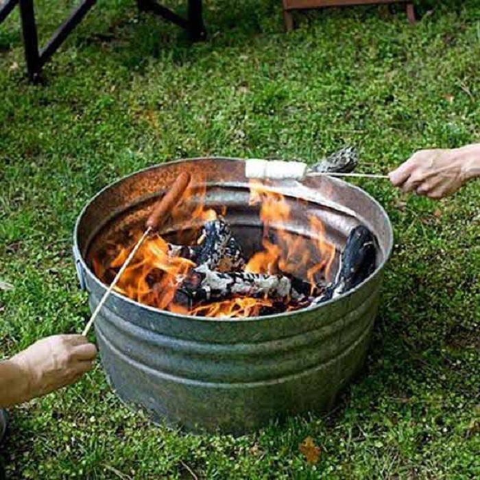 Красивое место для разведения костра в старом оцинкованном ведре создаст определенные удобства и понравится определенно.