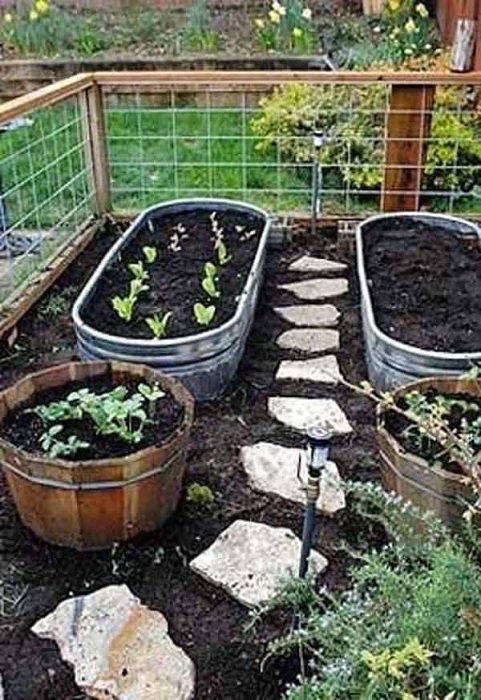 Удобное и оригинальное решение создать огород на высоте при помощи старых оцинкованных ванн и ведер.