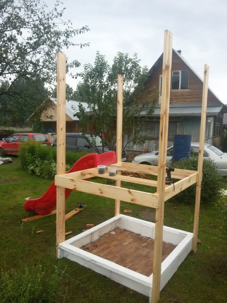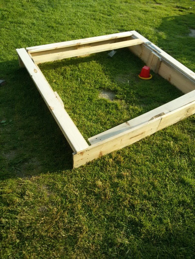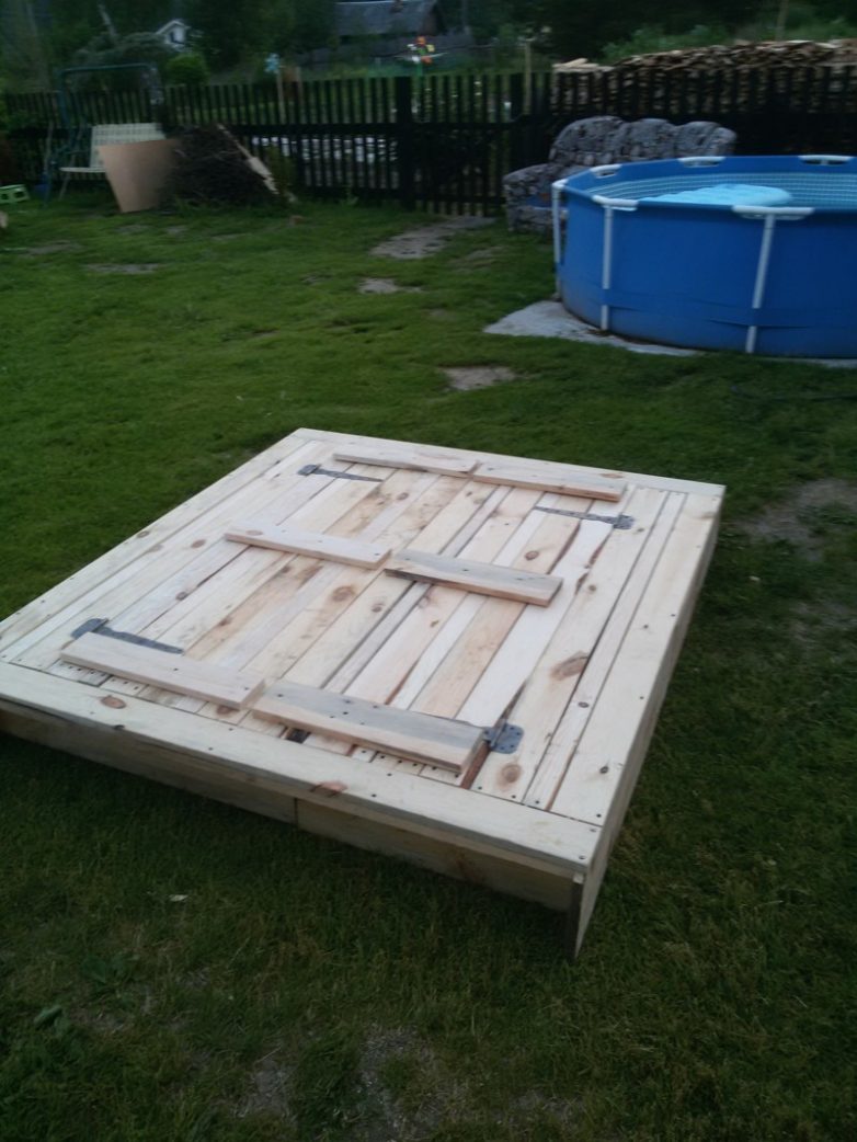 Песочницу решили сделать с крышкой, для защиты от кошек и летающего мусора