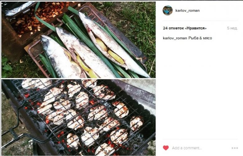 Параллельно жарим мясо и коптим рыбу