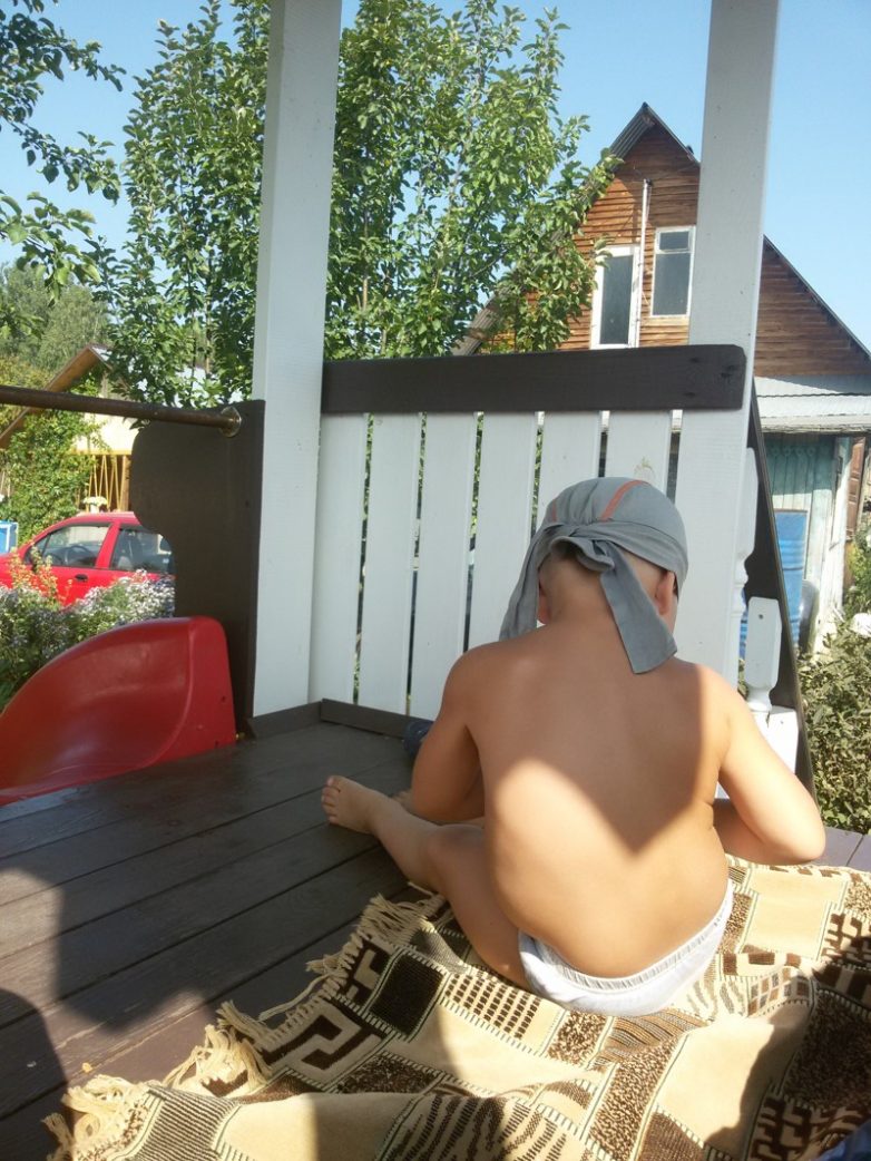2 этаж песочницы/горки. Иногда стелим одеяло берем подушки и валяемся в тени, смотрим мультики, балдеем