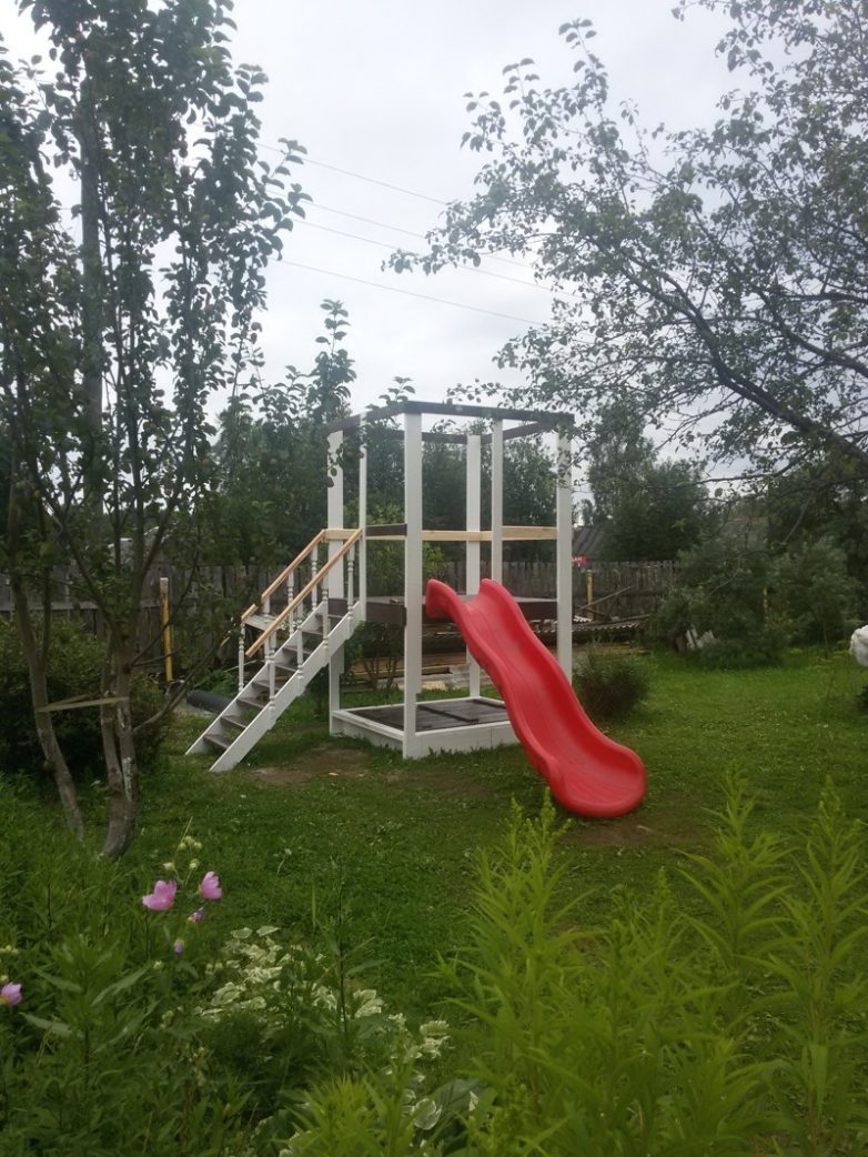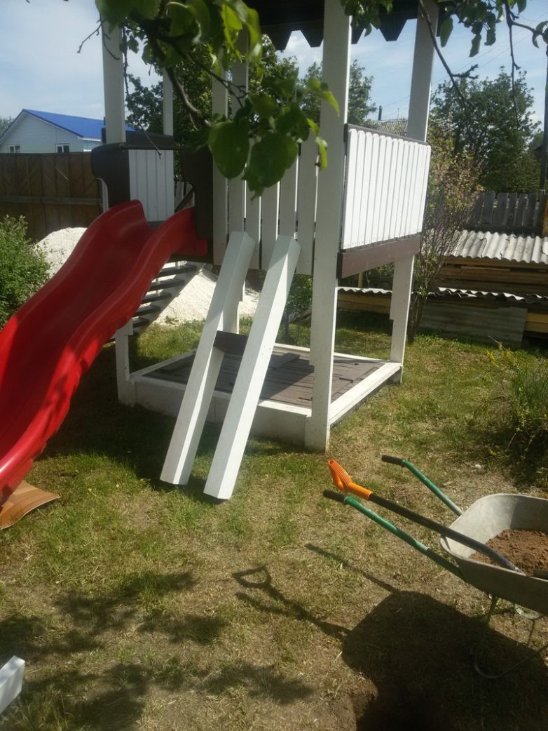 В 17 году планируется изготовить 2 съемные качели которые будут меняться на гимнастические кольца и/или большой подвесной «диван» + с торца будет лестница и… Кто еще знает чего там будет))))