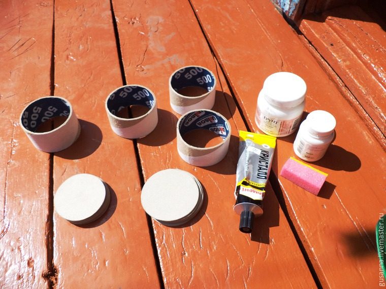 Шаг 3. Затем края кружков, внутреннюю часть бобины (убираем внутри один слой бумаги, если необходимо, чтобы рисунок не просвечивался через краску) красим акриловой краской на несколько слоев. Можно использовать грунтовку для внутренней части бобины.