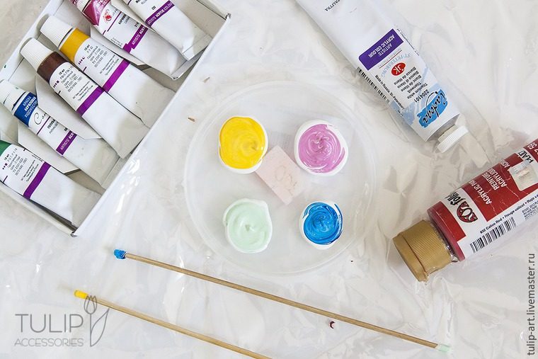 Замешиваем необходимые цвета из акрила.