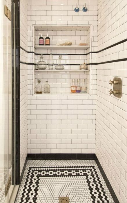 Такую систему хранения стоит делать ещё на этапе ремонтных работ. Лучше, если она будет располагаться в душевой зоне. Это позволит без проблем брать необходимые шампуни и гели во время принятия душа. Такая ниша смотрится очень аккуратна и способна стать настоящим украшением интерьера.