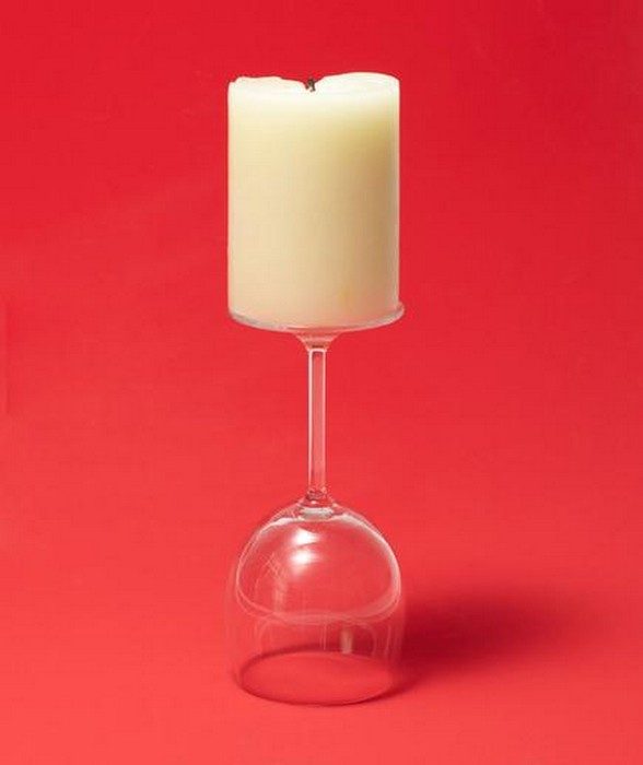 4. А в качестве оригинального подсвечника можно использовать перевёрнутый бокал. Выглядит ну очень стильно