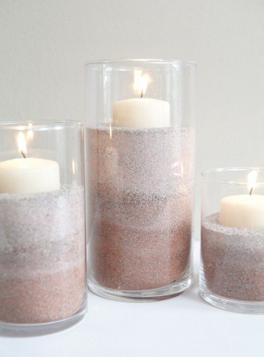 9. Чтобы не запачкать воском подсвечник, насыпьте туда немного песка