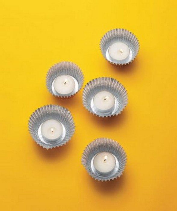 2. Сделайте милейшие подсвечники для чайных свечей из оберток для кексов