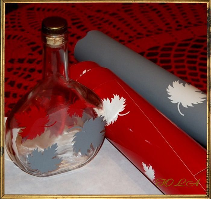 Эта краска сохнет очень быстро, поэтому буквально через 10 минут аккуратно отклеиваем наши листочки от бутылки.