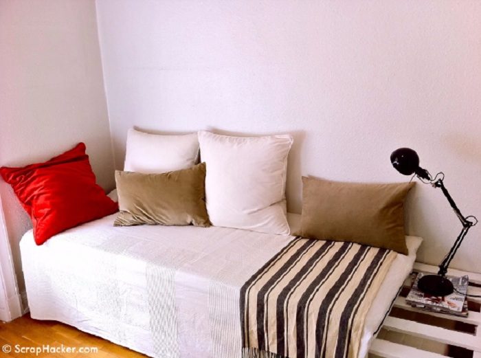 Отличное решение преобразить интерьер при помощи создания диванчика из европоддонов.