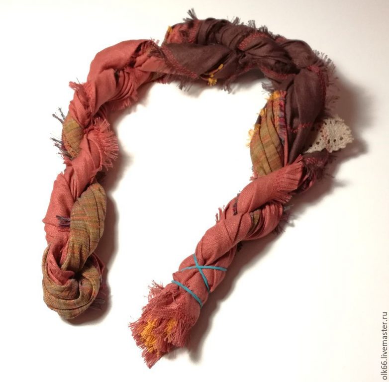 Сворачиваем готовый шарф в жгут.