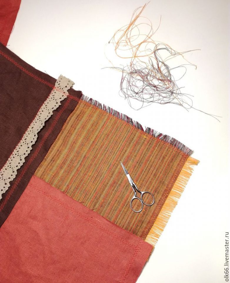 Сшиваем все детали. Сначала, рыжие и полосатые. Затем соединяем их с деталями из коричневого льна. Ничего сложного :)