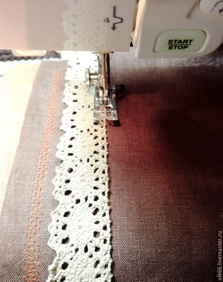 Кружево пришиваем швом " елочка".